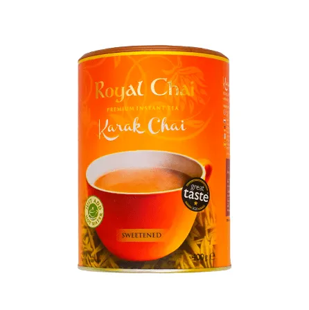 Royal Chai Karak Sweetened is a premium instant tea blend that captures the authentic taste of traditional Karak chai. This rich and aromatic beverage combines high-quality black tea with a blend of spices and sweeteners, offering a comforting and indulgent experience reminiscent of the Middle Eastern classic.